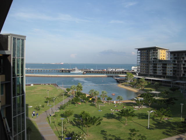 Darwin ist keine schön Stadt und viel kleiner als ich gedacht hab. Aber ich hab dort meine ersten Delphine hier in Australien gesehen – eine Gruppe von ihnen hat in der NĂ€he des Hafens gejagt und ich hab immer wieder die Finnen auf- und abtauchen gesehen. Hab stundenlang zugeschaut. Hatte ja auch Zeit – meine Schwester ist erst einen Tag spĂ€ter aus Brisbane angekommen.