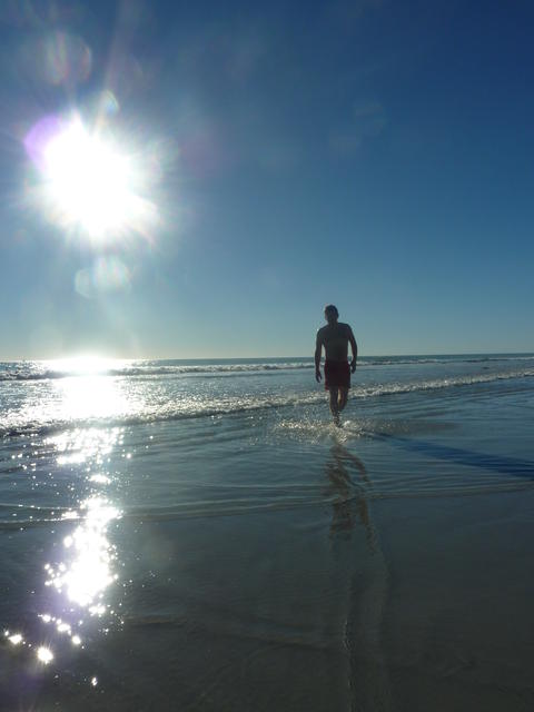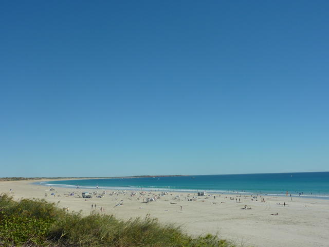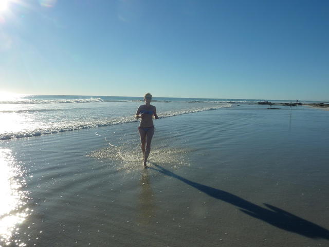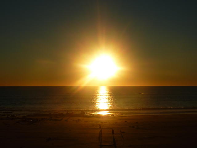 Seit gestern Abend sind wir jetzt hier in Broome. Hier ist alles so teuer wie im Outback (Benzin ca. 1.50$). Aber dafĂŒr gibt es hier einen wunderschönen, ewig langen und weißen Sandstrand (Cable Beach), der entschĂ€digt fĂŒr die Strapazen der langen Fahrt.