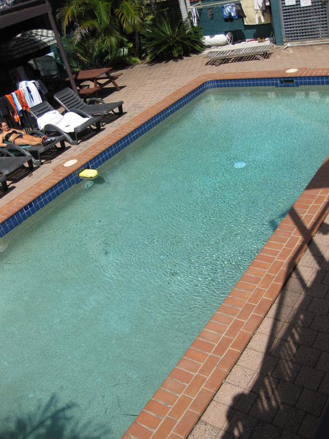 In Byron Bay hat es mir überhaupt nicht gefallen – die Stadt ist der Ballermann von Australien. Hatte aber wenig Lust zu feiern – vielleicht haben mir einfach die Leute dafür gefehlt 😉 Mit euch wäre das bestimmt lustig geworden. Das Hostel war ganz ok (siehe erste Bilder), aber kein Vergleich zu dem Luxus-Schuppen, den ich jetzt hier in Brisbane habe. Wir haben so gar Klimaanlage auf dem Zimmer und einen Pool auf dem Dach.
