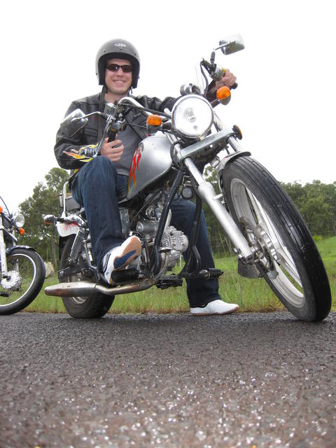 In Agnes Water hab ich eine Motorrad Gang gegründet. Chef bin ich – wer sonst. Wir werden hier mal unter den Bandidos und Hells Angles aufräumen. Auf einem der Fotos seht ihr mich auf meinem Chopper. Die anderen Bilder zeigen meine Gang, die so an die 50 Biker umfasst.