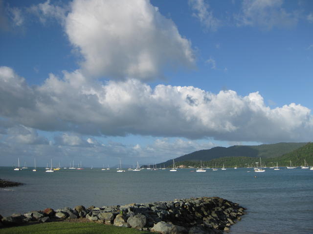 Apropos Wind, seit ich am Donnerstag (Vorgestern) wieder vom Segeln zurück bin, darf kein Schiff mehr den Hafen verlassen. Es gibt eine Wirbelsturm-Warnung der höchsten Kategorie. Vor allem in Airlie Beach soll es ziemlich schlimm werden. Mittlerweile hat sich der Sturm aber schon ein wenig abgeschwächt. Ich bin trotzdem vorsichtshalber weiter gereist und befinde mich auf der Magnetic Island vor der Küste von Townsville – dort soll der Sturm nicht so schlimm werden.