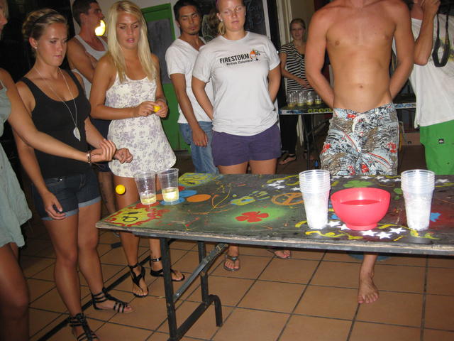 Vor Noosa war ich in Mooloolaba. Das ist auch ein ganz schönes Nest. Das Hostel war klasse – hab dort viele Leute kennen gelernt. Die haben an einem Abend Goonpong gespielt. Für alle die nicht wissen was Goon ist – das ist sehr billiger Wein aus Plastiksäcken verpackt in Karton. Billig, gut zum besaufen und noch besser für Kopfschmerzen und einen Hangover am nächsten Tag. Ich pack das Zeug nicht. Deshalb hab ich bei dem Spiel auch nicht mitgemacht sondern nur Fotos geschossen. Bin bei meinem Bier geblieben – wobei das auch nicht so wie in Deutschland ist 🙂 Nicht unbedingt schlecht, sondern einfach nur schwächer. Das Pong bei Goonpong kommt von PingPong – jede Mannschaft hat Tischtennisbälle und muss diese in die Goon-Becher der gegnerischen Mannschaft schmeißen. Trifft jemand, muss der Becher auf Ex geleert werden. Das wird schwieriger, je besoffener die Leute werden. Ist ein bisschen so wie Quartern bei uns.